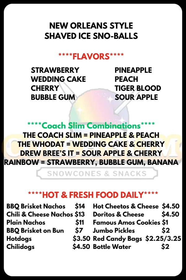 Let us cater your event. We have over 14 years of service. We are committed to the highest standards of customer service. We come prepared and can serve up to 400 hundred Sno-Balls per hour.